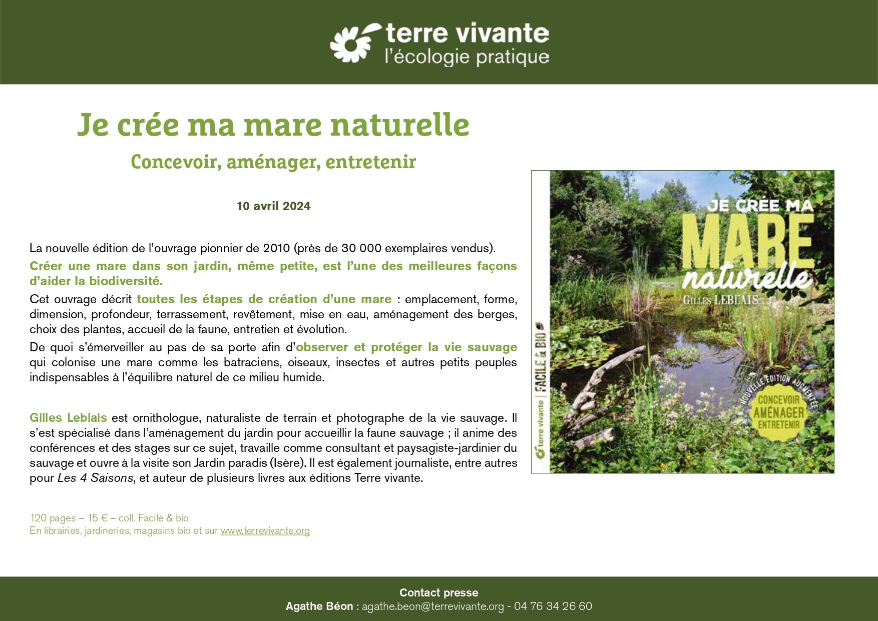 Quatorze ans après mon livre pionnier, en 2010, sur la mare naturelle, voici la nouvelle version revue et augmentée, parue au printemps 2024. Un indispensable dans l’aménagement d’un jardin de biodiversité !